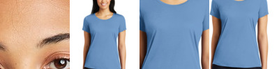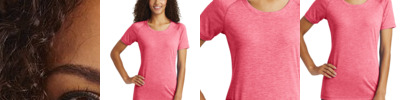 A soft cotton hand merges with color-locking, moisture-wicking performance in this tee that also has a matte finish. 4.7-ounce, 100% spun polyester jersey with PosiCharge technology Soft cotton hand Removable tag for comfort and relabeling Dyed-to-match neck taping Set-in sleeves