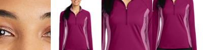 This lightweight pullover locks in color, wicks moisture, resists snags and has an amped up colorblock look. 4.1-ounce, 100% polyester yarn-dyed jersey with PosiCharge technology (Electric Heather) 4.7-ounce, 100% polyester jersey with PosiCharge technology (solid) Gently contoured silhouette Removable tag for comfort and relabeling Cadet collar Reverse coil zipper Colorblock on shoulders and sleeves Princess seams Set-in sleeves Open cuffs and hem Drop tail hem